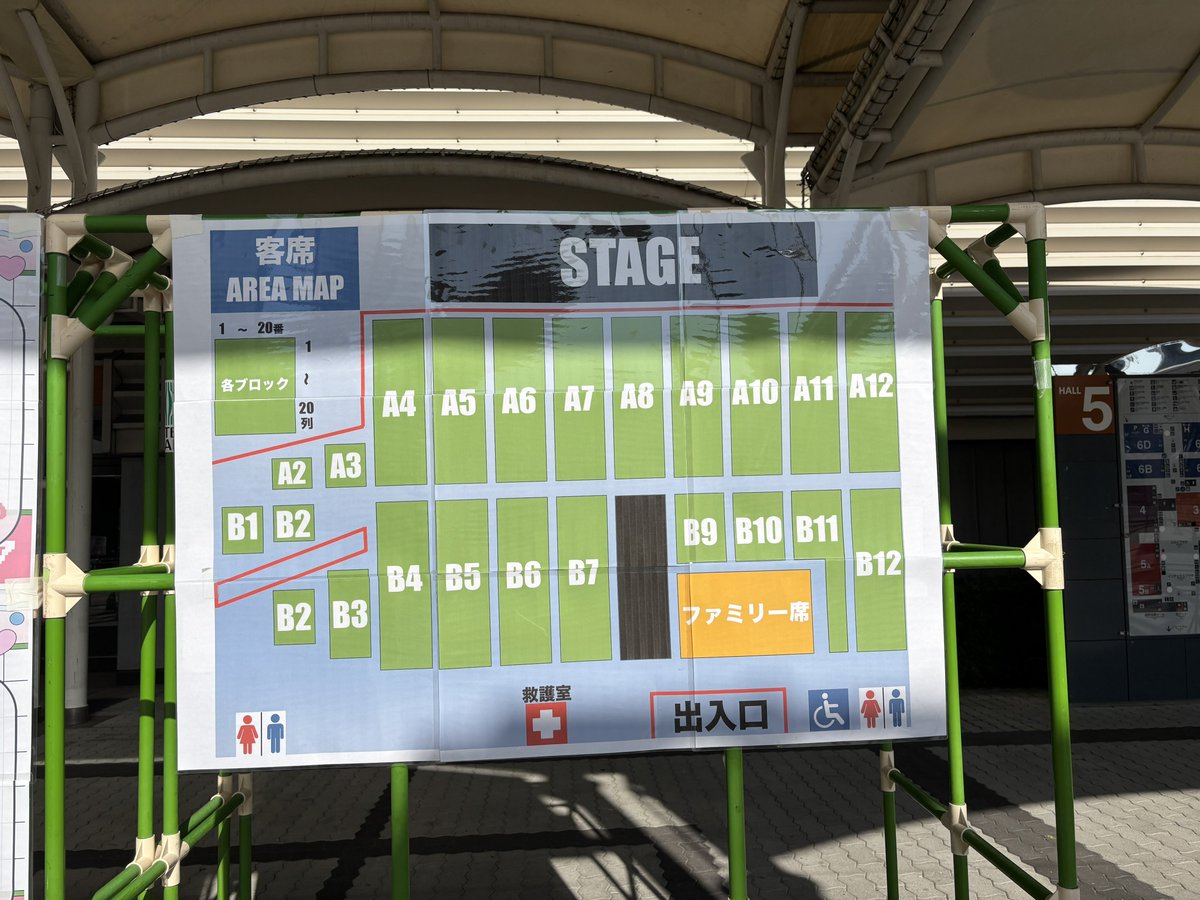 はちゃめちゃわちゃライブ大阪2日目、注釈付き座席、モニター柱で見えず、ステージもかろうじて見えたけど、盛り上がって楽しめたし、